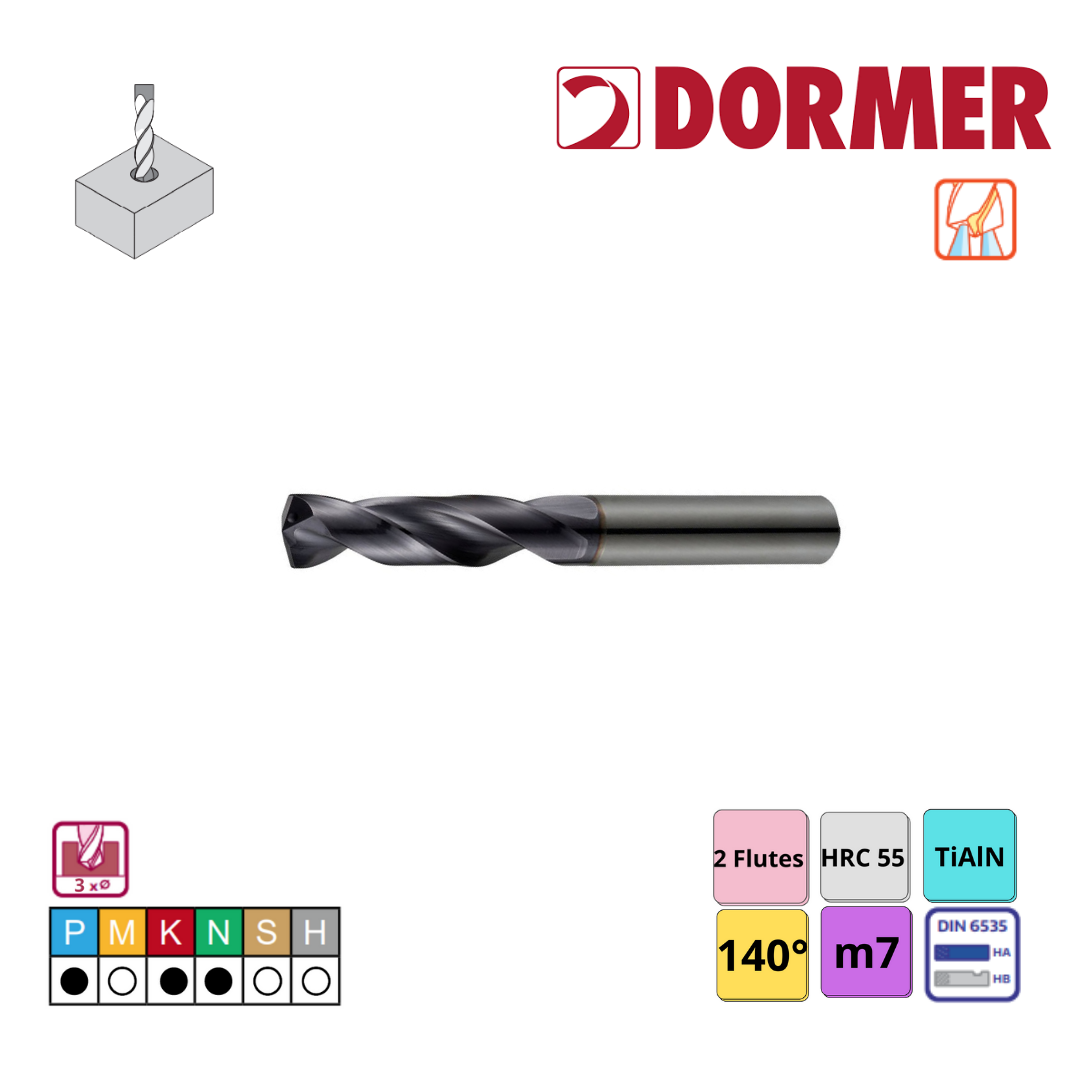 DORMER R457 – ΤΡΥΠΑΝΙΑ ΚΑΡΒΙΔΙΟΥ 3XD ΜΕ ΨΥΞΗ 140° ΓΕΝΙΚΗΣ ΧΡΗΣΗΣ ΓΙΑ ΌΛΑ ΤΑ ΥΛΙΚΑ ΕΩΣ 55HRC (Φ3-Φ12)