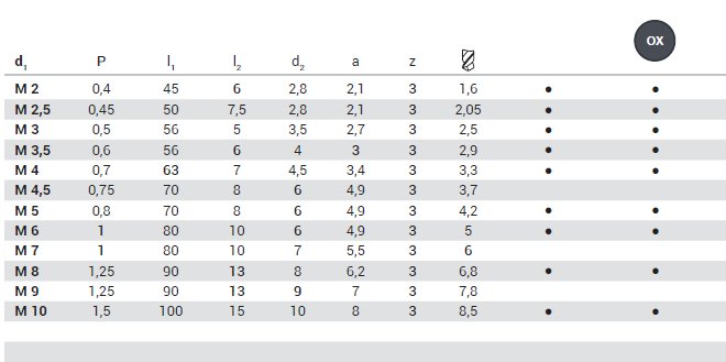 ΚΟΛΑΟΥΖΑ ΜΗΧΑΝΗΣ ΣΤΡΙΦΤΑ (ΤΥΦΛΗ ΤΡΥΠΑ) 40°, M (ΜΕΤΡΙΚΟ ΣΠΕΙΡΩΜΑ) FORM C 2-3, HSS-E-OX (Oxidation), <2xD ΜΕ ΚΑΡΕ, ΑΝΟΧΗ ΣΠΕΙΡΩΜΑΤΟΣ 6Η, DIN 371/DIN 376, ΚΑΤΑΛΛΗΛΑ ΓΙΑ ΧΑΛΥΒΕΣ (-900Ν/mm2) ΚΑΙ ΜΗ ΣΙΔΗΡΟΥΧΑ ΥΛΙΚΑ (ΑΛΟΥΜΙΝΙΟ, ΧΑΛΚΟΣ), ΤΟΥ ΕΡΓΟΣΤΑΣΙΟΥ NAREX ΤΣΕΧΙΑΣ ΤΗΣ ΣΕΙΡΑΣ ΓΙΑ ΧΑΛΥΒΕΣ 2090/4090. ΔΙΑΘΕΣΙΜΕΣ ΔΙΑΣΤΑΣΕΙΣ Μ2-Μ24.