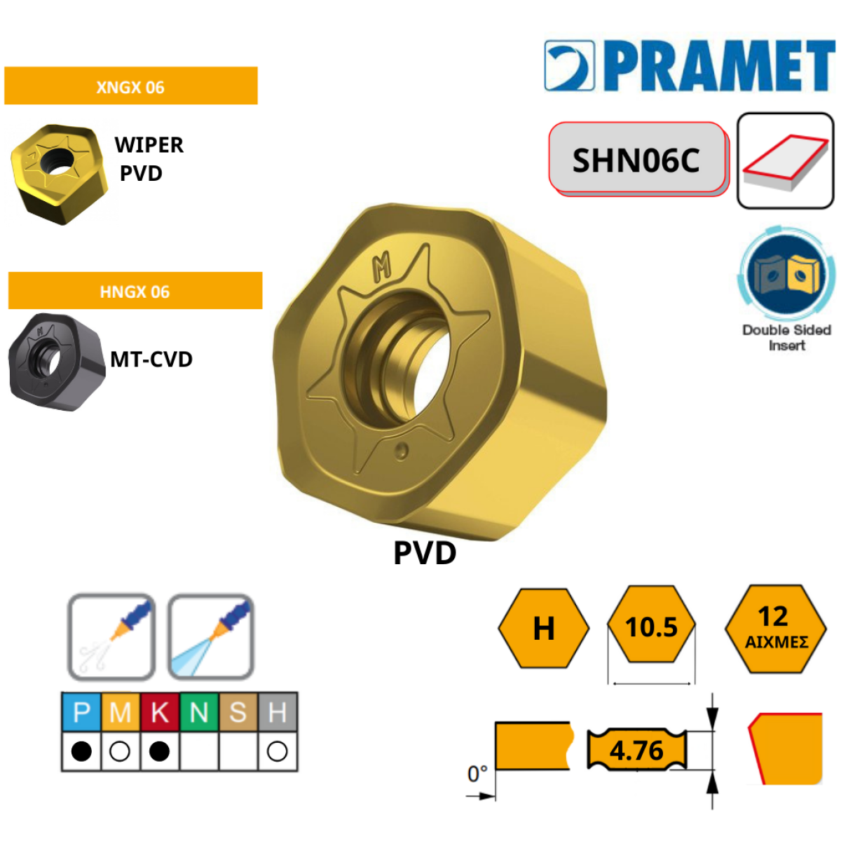 PRAMET HNGX / XNGX 0604 – ΠΛΑΚΙΔΙΑ ΦΡΕΖΑΣ ΓΙΑ FACE MILLING ΔΙΠΛΗΣ ΟΨΗΣ ΜΕ 12 ΚΟΠΤΙΚΕΣ ΑΙΧΜΕΣ ΓΙΑ ΤΙΣ ΚΕΦΑΛΕΣ SHN06C